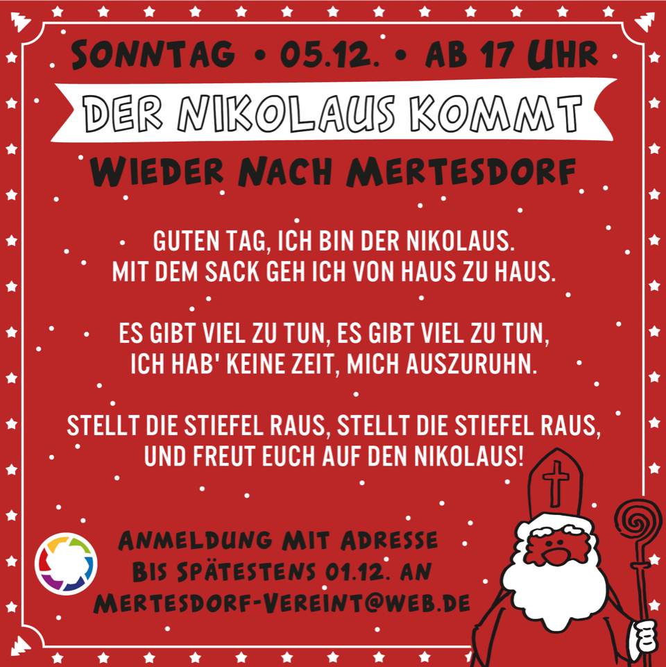 Der Nikolaus besucht auch dieses Jahr wieder die Kinder in Mertesdorf.