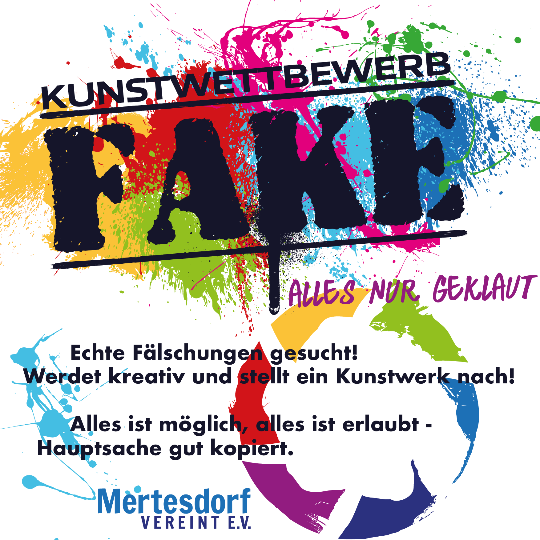 Mit Abgabe der Werke räumen die Teilnehmer/innen dem Veranstalter unbeschränkte nicht ausschließliche Nutzungsrechte zur Veröffentlichung ein. Eine Vergütung ist ausgeschlossen. Sollten aufgrund der Veröffentlichung Urheberrechte durch Dritte verletzt werden so übernimmt Mertesdorf Vereint e.V. dafür keine Verantwortung. Die Werke dürfen nicht gegen die Rechtsvorschriften und gegen die guten Sitten verstoßen. Die Arbeiten bleiben Eigentum der Teilnehmer/innen und können nach Beendigung der Ausstellung abgeholt werden. Der Rechtsweg ist ausgeschlossen.