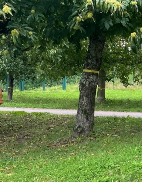 Und so sehen die Bäume mit den Bändern tatsächlich aus.