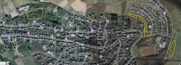 Wo die Bereiche sind in denen sich die gemeindlichen Bäume befinden, können Sie auf der Karte erkennen.