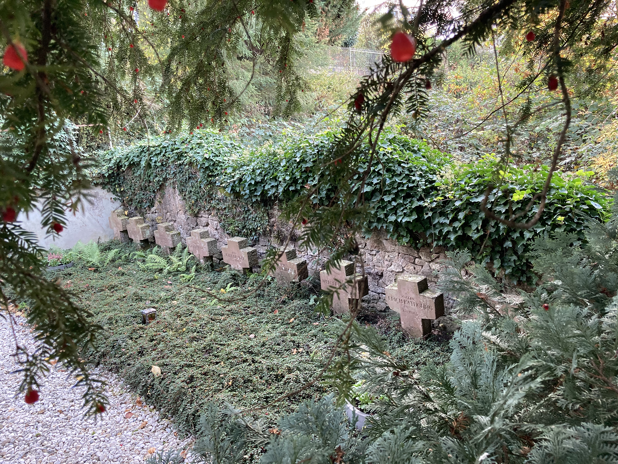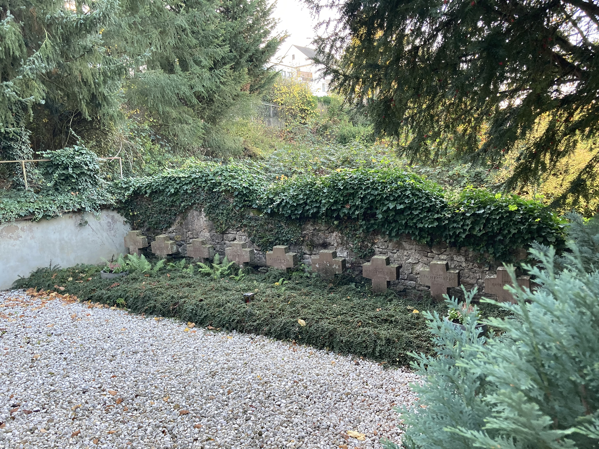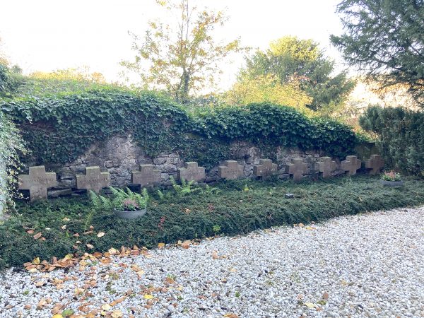 Ein Platz zum Innehalten und Gedenken: Auf dem Areal der Alten Pfarrkirche befindet sich der Soldatenfriedhof mit Gräbern der in den beiden Weltkriegen als Soldaten gefallenen Bürgern von Mertesdorf.